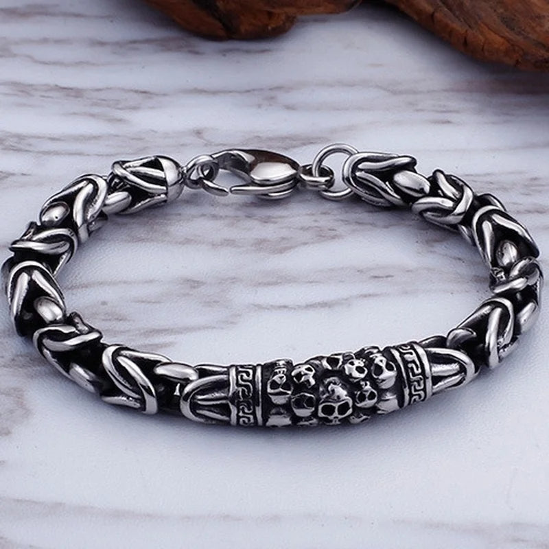 Osez porter ce magnifique bracelet gothique catacombe et affirmez votre style dark au quotidien. Sa couleur mi brillante mi mat s'accordera avec toutes vos tenues. Il ira à merveille sur les hommes et les femmes, sans distinction. Notre catégorie de bijoux gothique unisexe est là pour compléter votre style.