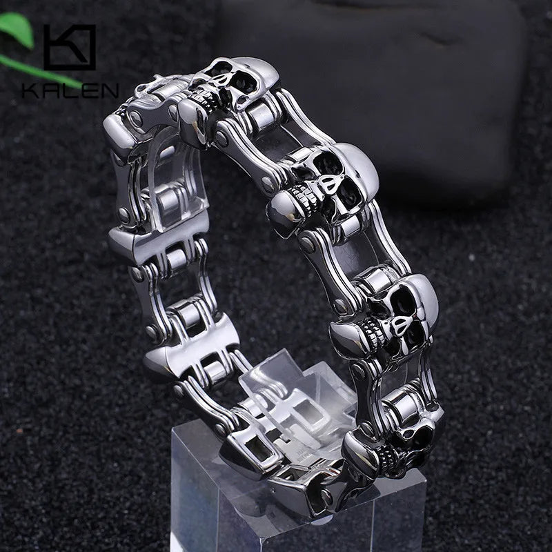 Une bonne grosse chaine de moto ornés de tête de mort, quoi de plus biker comme design ? Optez pour ce bracelet gothique tête de mort et affirmez votre appartenance à la mouvance biker sans aucune ambiguïté. Avec lui et une de nos bagues têtes de mort gothique biker, pas question de passer inaperçu.