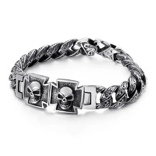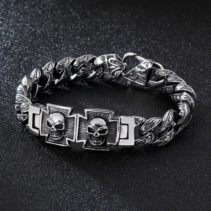 Oserez vous le style biker jusqu'au bout des poignets avec ce bracelet gothique biker qui nous rappelle l'univers des chopper ? Pour nous c'est un grand oui ! Massif, effrayant et bien sur 100% goth, tous les codes sont respectés. Alors enfourchez votre bécane et venez découvrir notre sélection de collier biker.