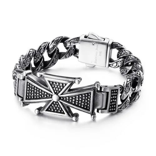 Chevauchez votre monture fièrement en arborant ce sublime bracelet gothique dans le style des bikers américains. Une bonne grosse gourmette bien large, rien de mieux pour représenter son mode de vie au quotidien. Complétez votre look avec un collier gothique massif