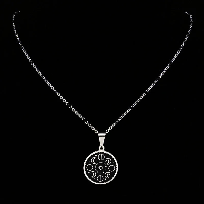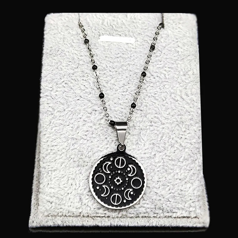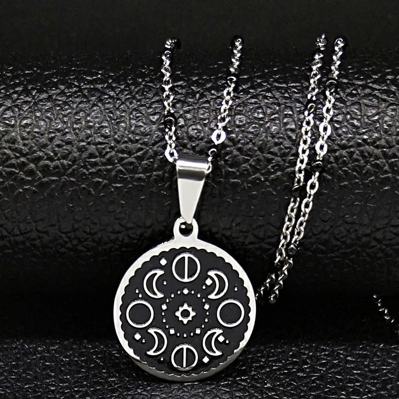 La lune est pleines de mystère, et ce collier gothique représentant les différentes positions de lune l'est également. Si vous avez aimez nos crop top gothique avec des motifs lunes, alors ce collier à pendentif est fait pour vous. En plus, nos bagues style goth à motif lunes seront parfaites pour l'accompagner.