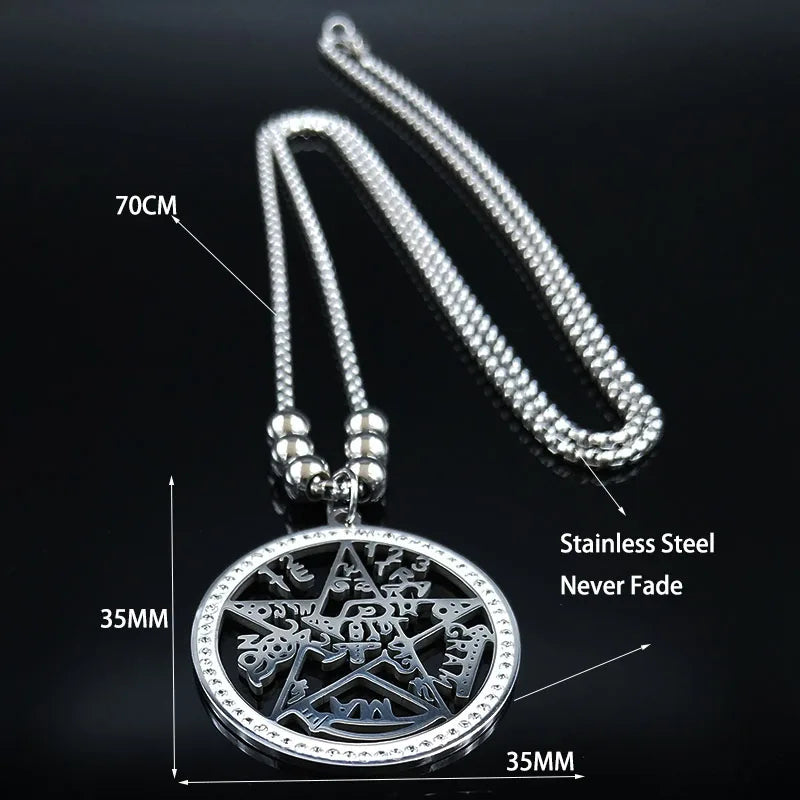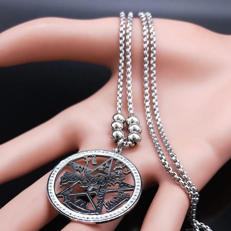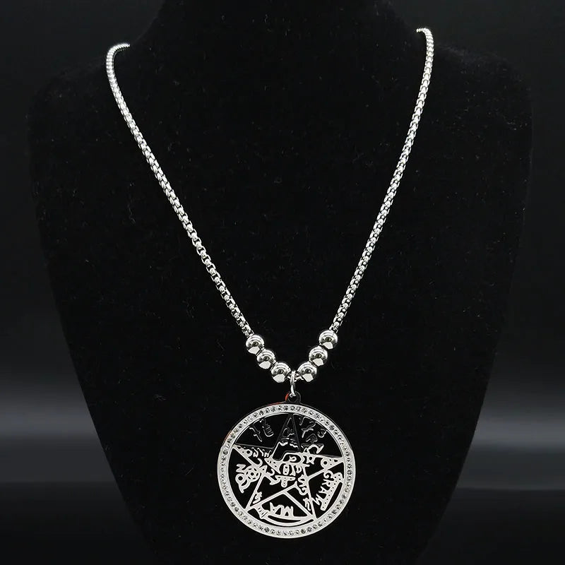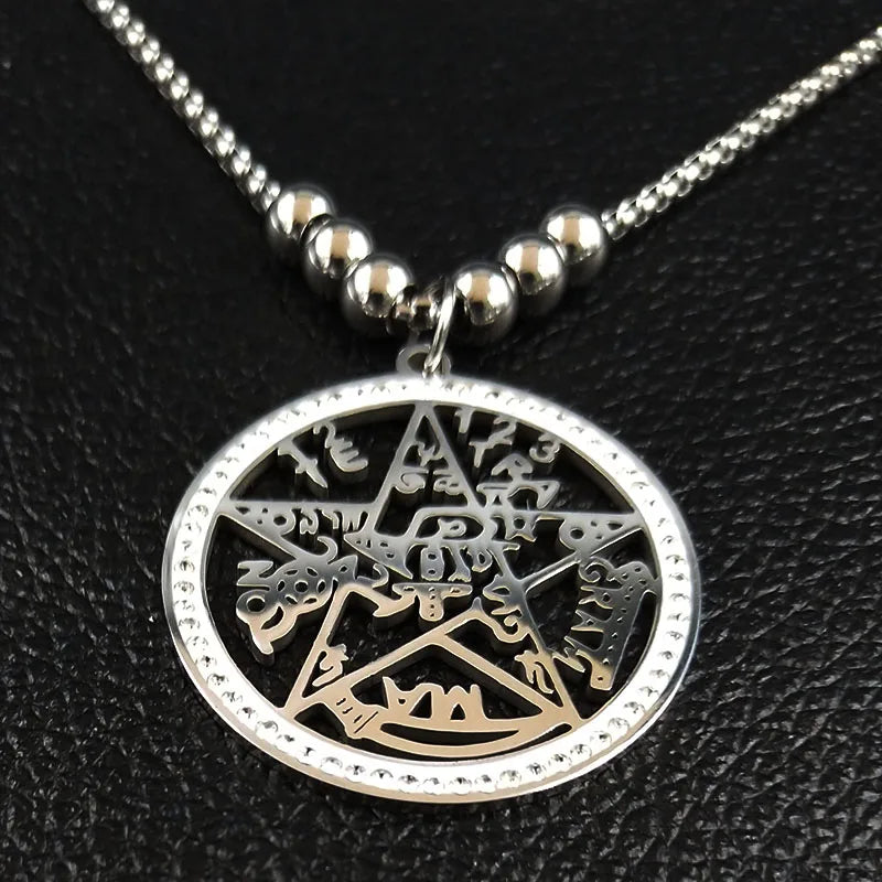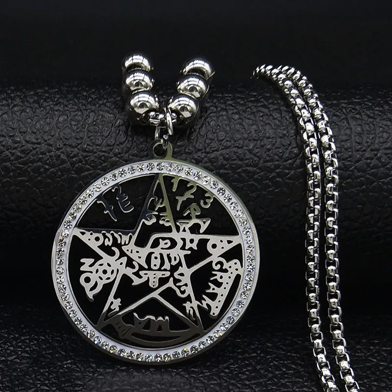 Tout bon anticonformiste devrait porter un collier gothique avec un pendentif en forme de pentagramme. Ses inscriptions vous entraineront dans un monde de magie noire. Saurez vous prendre le dessus sur cette sublime pièce ? En tout cas, il est sûr qu'il aura une place de choix dans vos bijoux style sataniques gothiques.