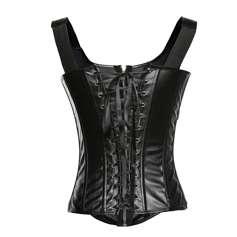 Imposez un style dominatrice des enfers avec ce corset gothique style cuir. Avec sa fermetures en lacets dans le dos, il inspire un peu un genre de sévérité qui plaira forcément à votre copain. Il ira parfaitement avec un pantalon gothique issu de notre collection.