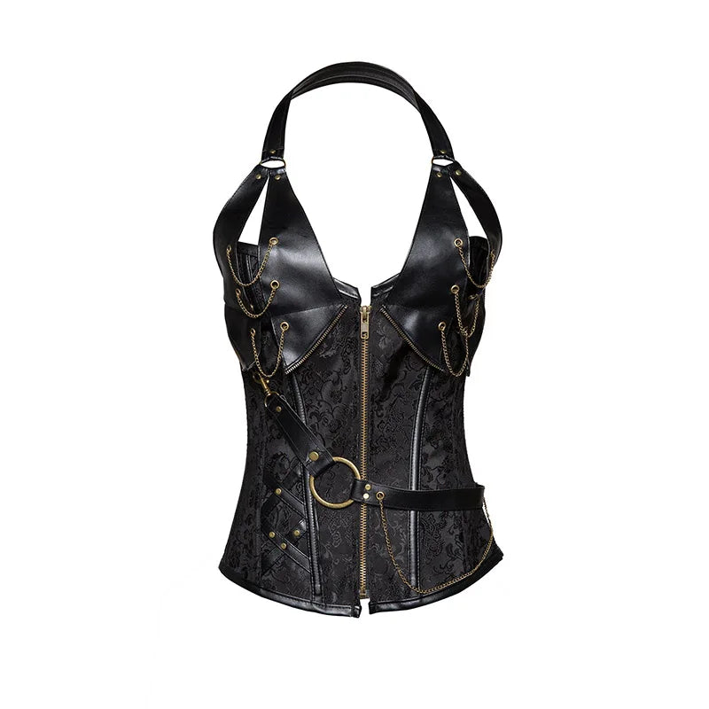 Arborez un style guerrière amazone avec ce magnifique corset gothique steampunk et sa finition style cuir brut. En effet, sa coupe, nous rappelle une armure d'antan. Disponible en 2 coloris, vous trouverez votre bonheur facilement, et pourquoi ne pas l'associer avec notre sélection de bijoux gothique pour femme.