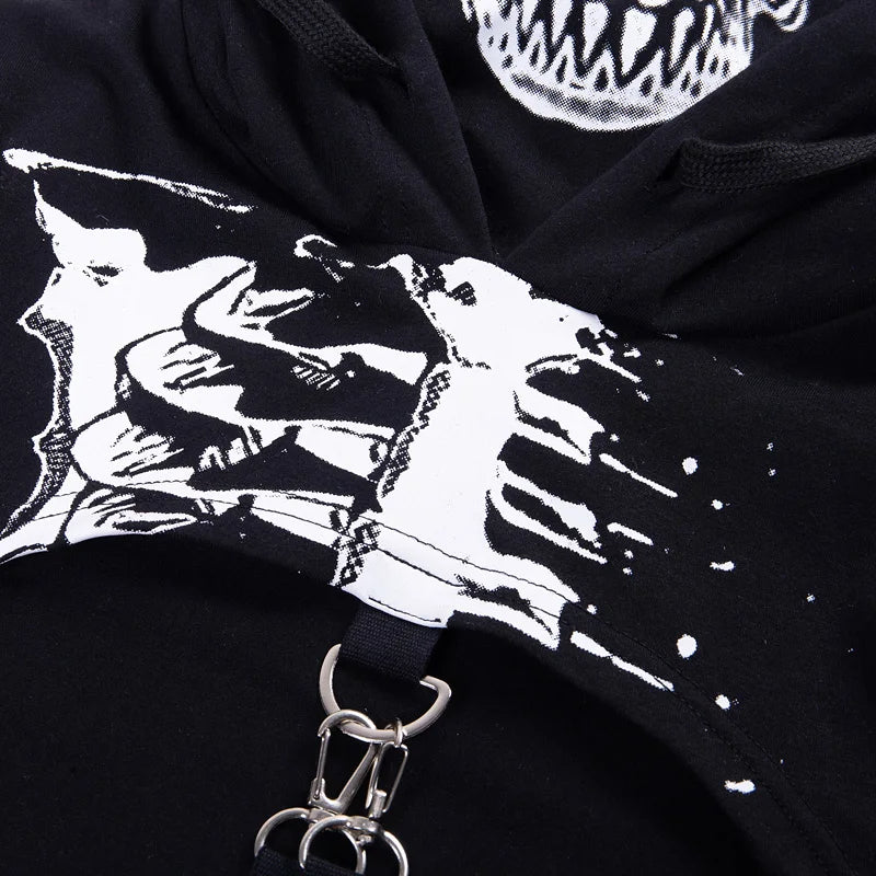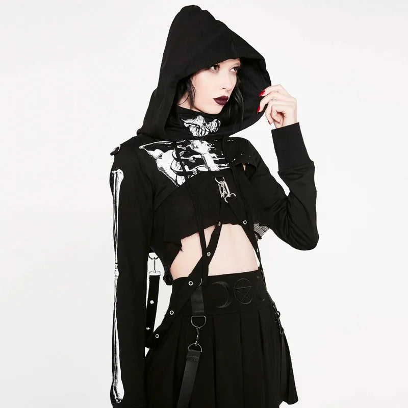 Wouah, original n'est ce pas, on en croise vraiment pas tous les jours des tenues comme celle ci ! Affirmez votre look goth ainsi que votre féminité en portant ce top avec sa coupe ouverte sur la poitrine et ses lanières descendants sur les hanches. Associez le à un de nos pantalon gothique pour un rendu explosif.