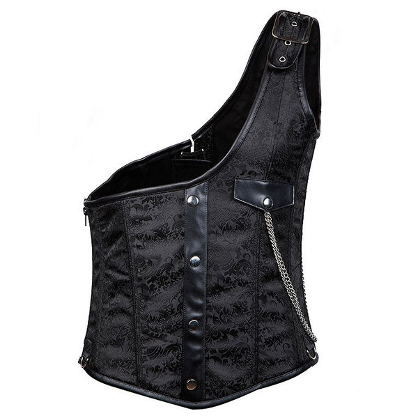 Dans un style atypique, nous vous recommandons vivement ce sublime gilet sans manche à une seule bretelle. Un mix entre le traditionnel corset et le très classe gilet sans manches. Allez vous craquer ?