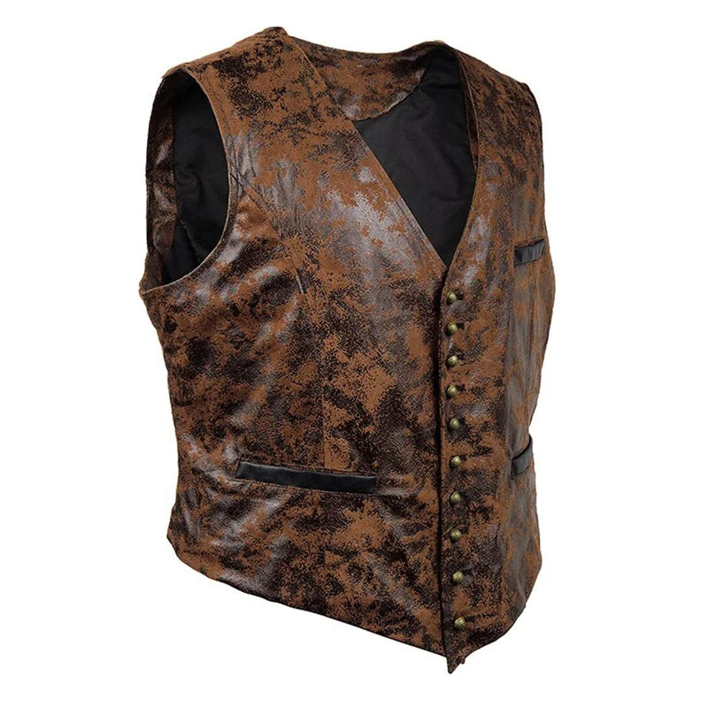 Avec ce gilet steampunk homme cuir, peaufine-toi une tenue digne des plus grands baroudeurs de l'ouest ! Ajoute ce gilet en simili cuir vieilli dans ta tenue steampunk tu sera sûr de ne laisser personne indifférent. Alors n'hésite plus et ajoute ce magnifique gilet gothique avec un de nos pull gothique à ton panier !