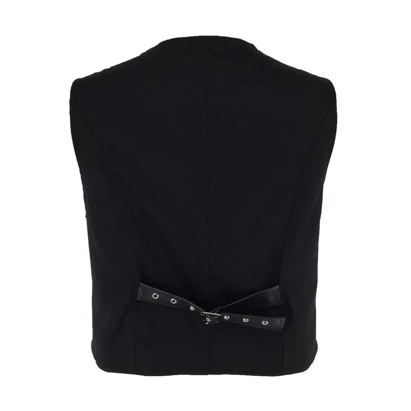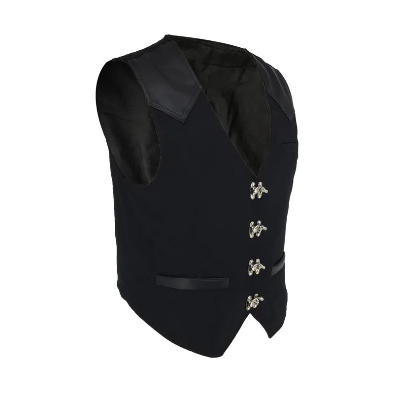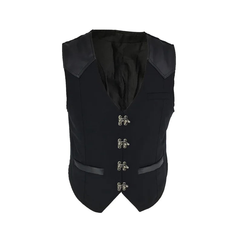Ce gilet gothique homme sera parfait associé à une tenue bien dark, avec ses fermetures en crochets argentés et sa finition style cuir sur les épaules et sur le revers des poches, ce gilet est tout ce qu'il vous faut pour parfaire votre tenue goth. Alors n'attendez plus pour le commander, ce modèle est l'un des plus apprécié !