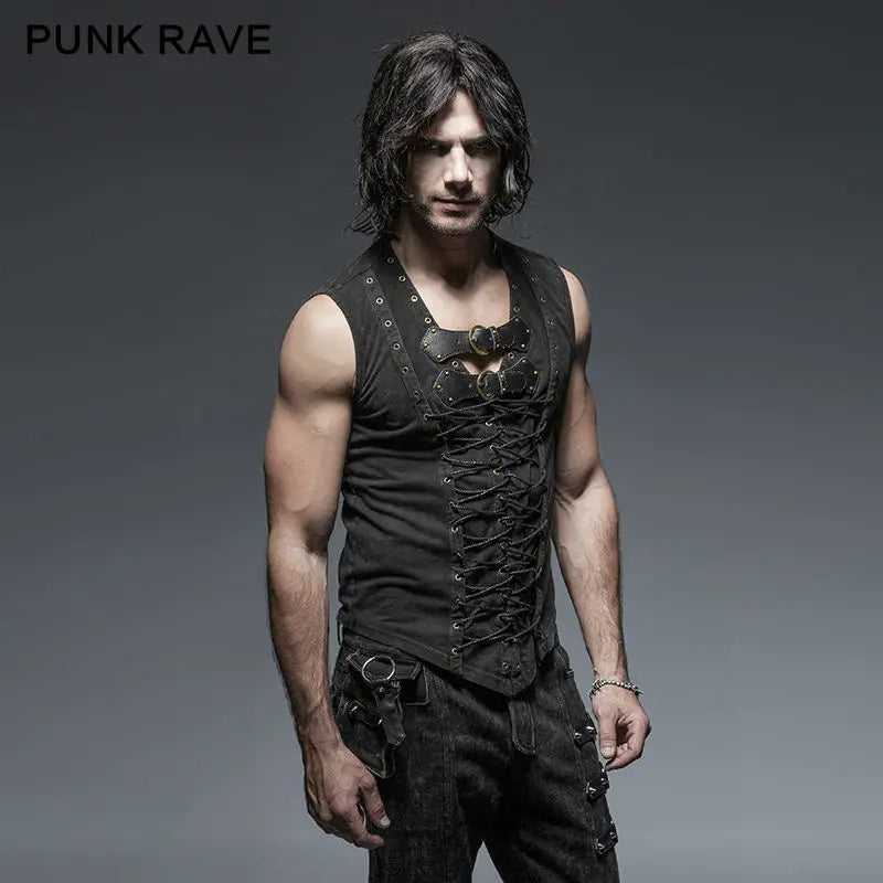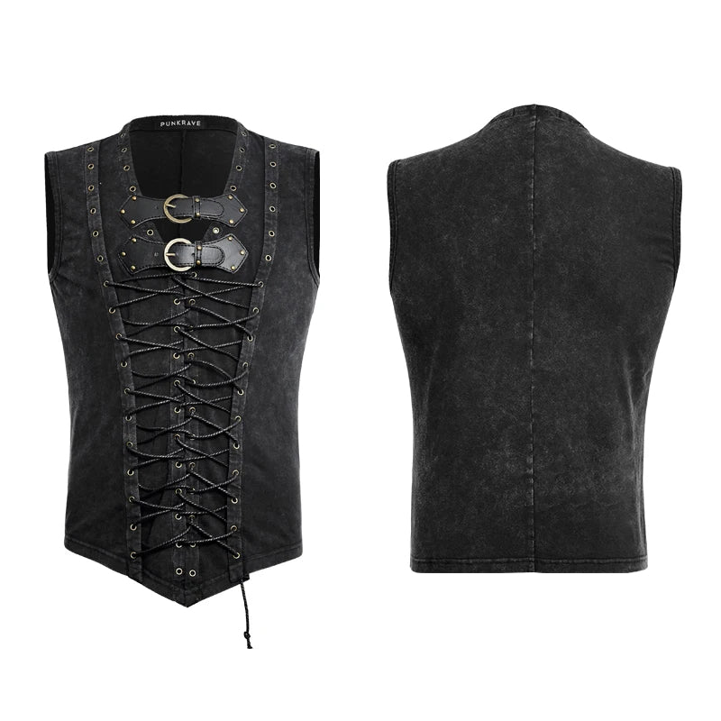 Découvrez une nouvelle facette de la mode steampunk grâce à ce sublime gilet sans manche gothique pour homme. Avec sa fermeture en lacets et ses 2 lanières pectorales, ce gilet deviendra facilement un indispensable de votre garde-robe pour un total look goth ! Associez le à un de nos pantalons pour plus de style.
