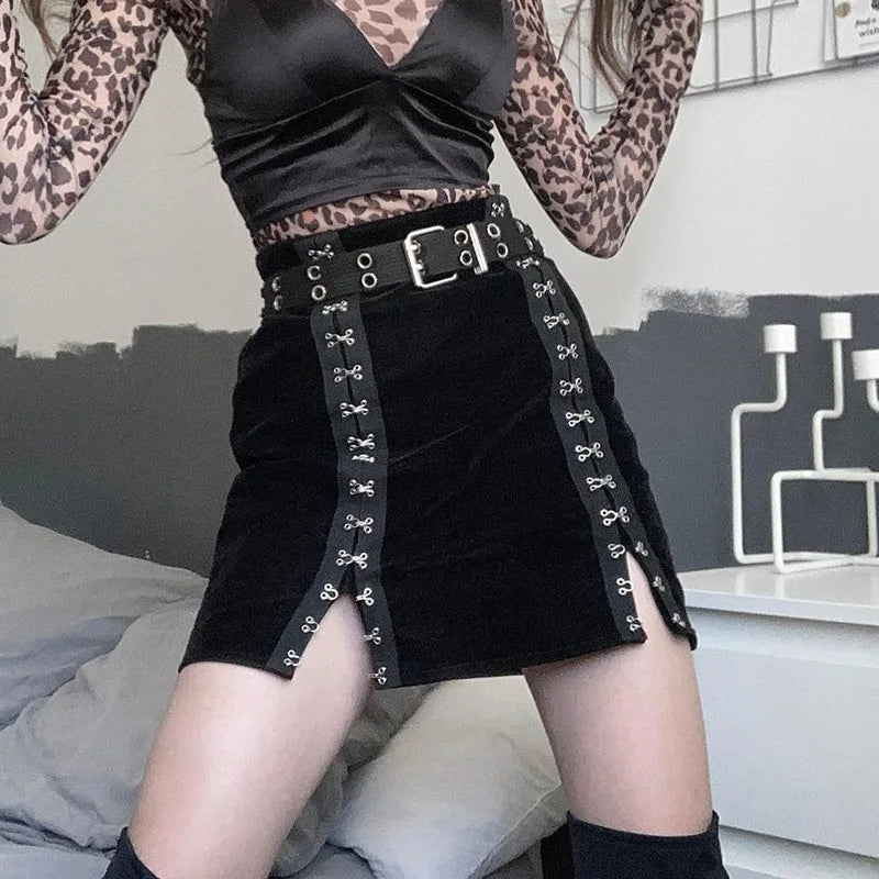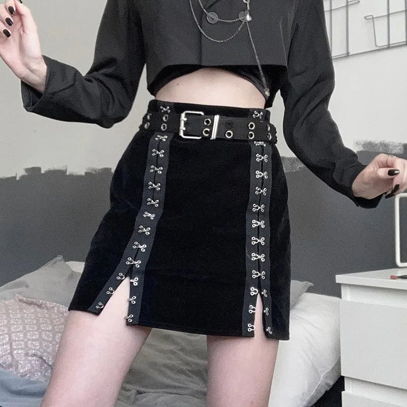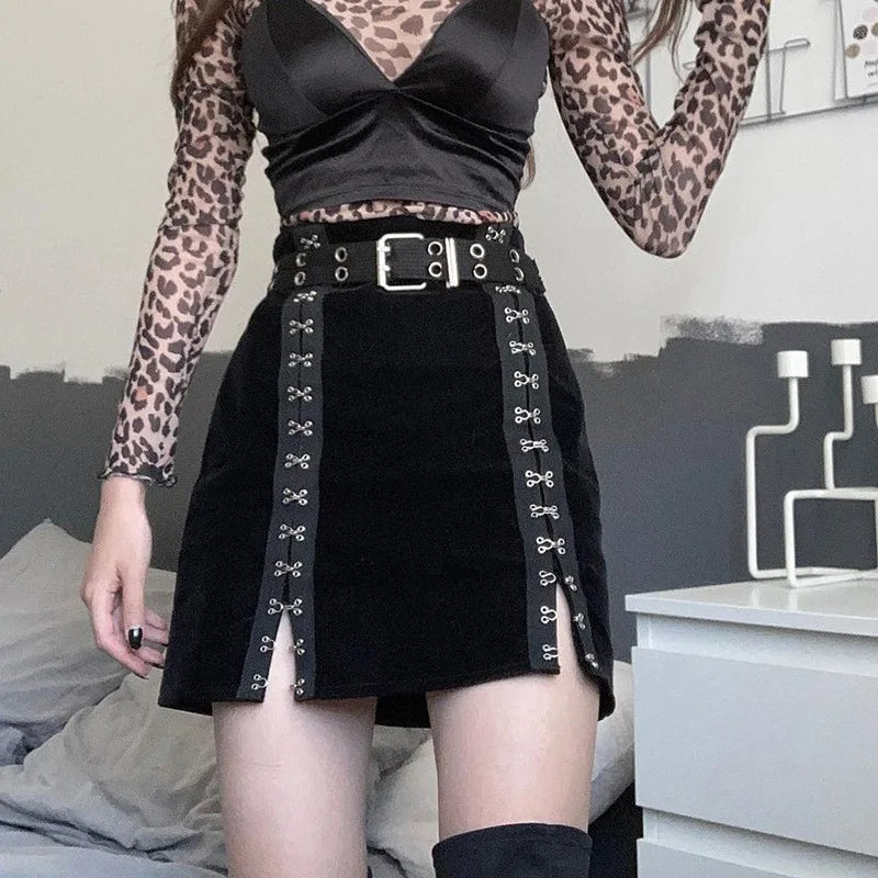 Le style grunge comme dans les années 1990 est à porté de main avec cette incroyable jupe gothique noire et ses fermetures en métal sur toute la hauteur. Portée en taille haute avec un de nos crop top, elle sera votre meilleur allié pour affronter les journées d'été. Alors, qu'attendez-vous pour vous l'offrir ?