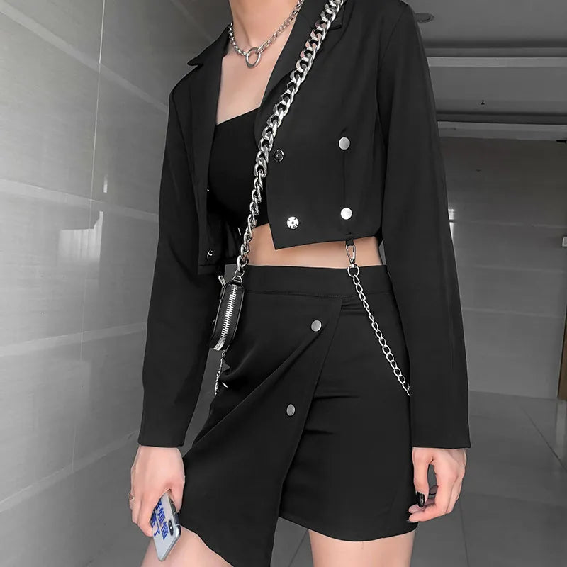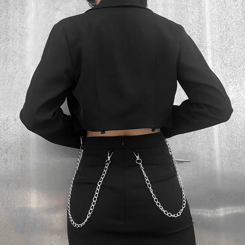 Si la classe et l'originalité devait être un vêtement, ce serait sans aucun doute celui-ci ! Regardez-moi cette beauté ! Cette veste gothique femme style blazer offrira une grande élégance à vos tenues tout en gardant une grande légèreté. Un style goth même en été, avec une de nos jupes gothique pour passer de confortables soirées.
