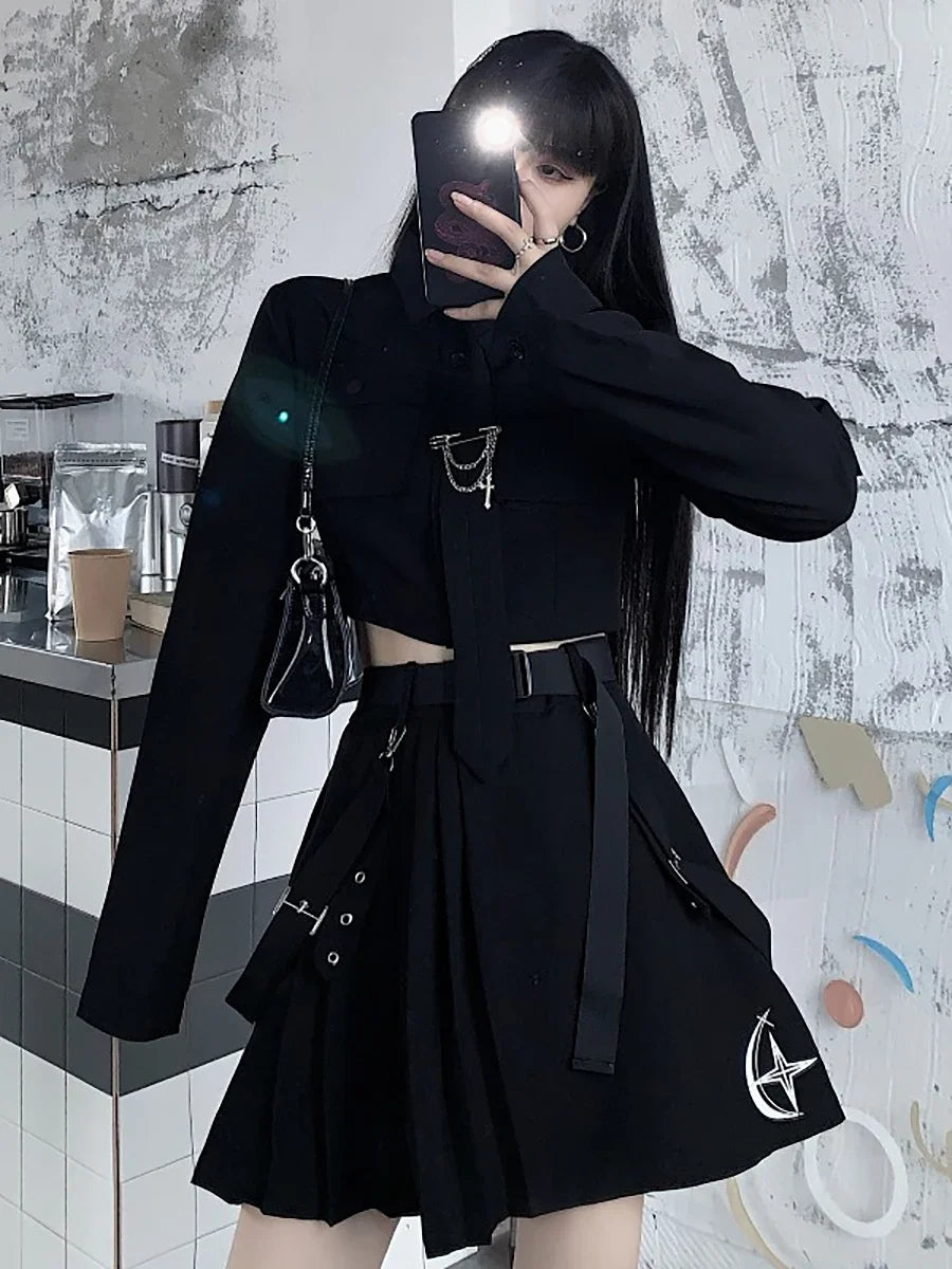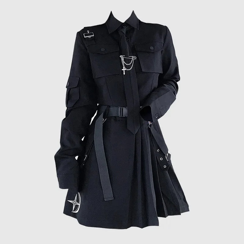 Ce petit manteau gothique style militaire inclus aussi une jupe mi longue noir cette ensemble vous donnera style des plus audacieux. Confort et douceur, sera les adjectifs qualifiant notre produit.