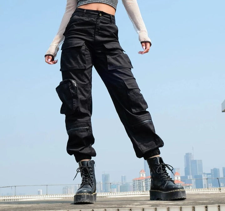 Garde à vous camarade ! Ce pantalon gothique femme style cargo est obligatoire à avoir dans sa garde-robe . Quoi de plus iconique que le style full black pour un gothique. Soyez intransigeant dans votre style et assumer votre penchant goth à 100%. Associez le à un de nos sweat gothique large pour une tenue simple et efficace.