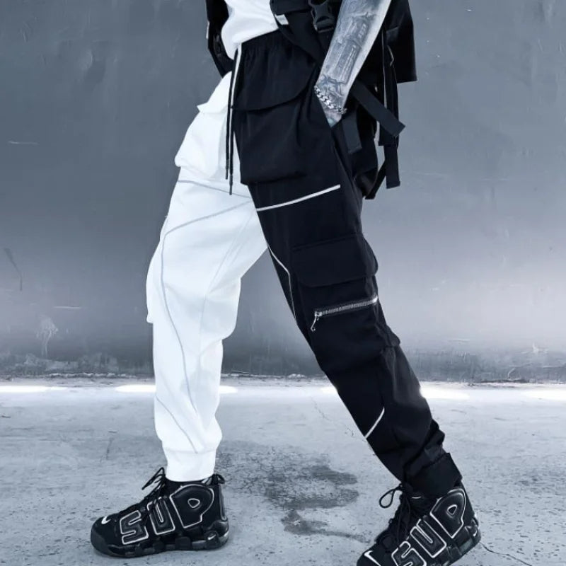 Un style purement Japonais urbain, pas de fautes de goût avec ce pantalon gothique homme bretelle ! Oserez-vous le style bicolore ?
