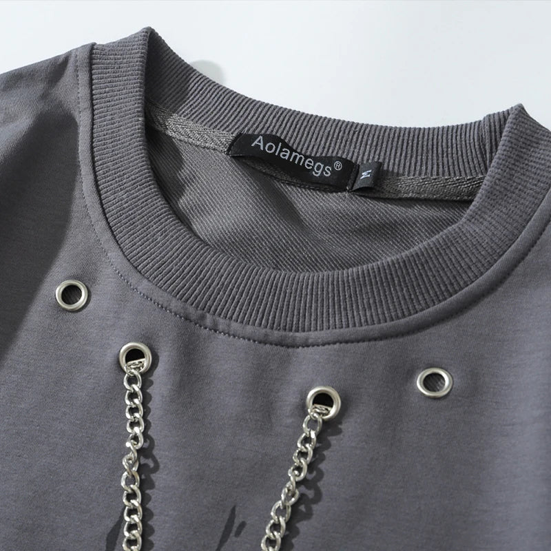 Avec sa chainette intégrée au col et ses manches lacérées, vous allez forcément faire sensation avec ce pull gothique homme ! Attention à ne pas rendre votre copine jalouse avec … Il ira parfaitement avec un de nos pantalons urban goth