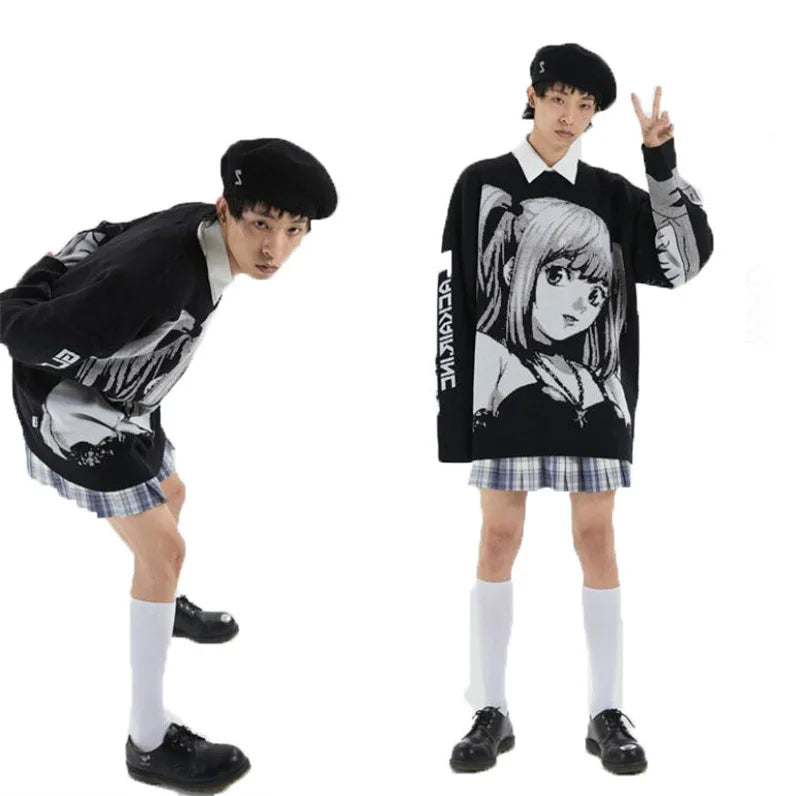 Au moins avec ce pull gothique pour homme on sait directement que tu es un adepte du célèbre manga animé du livre de la mort. Un vêtement magnifique, avec l'icône goth du manga Misa Amane. Nos tee shirt style manga sont ici !