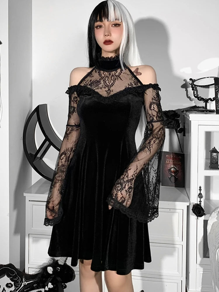 Avec son look à dentelle mi-transparent cette robe grunge vous donnera un look sexy goth sans aucun effort.
