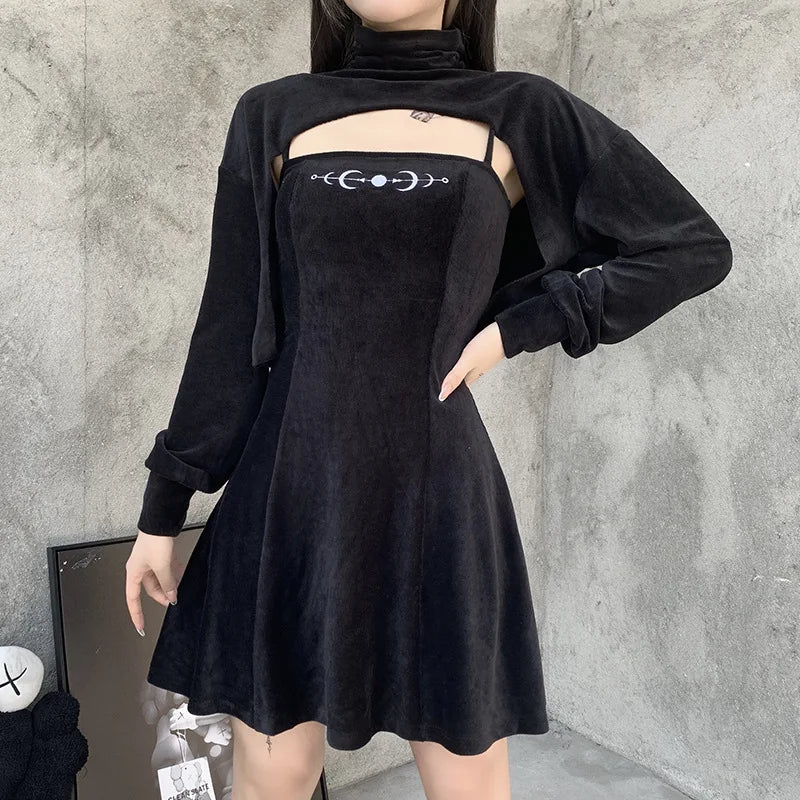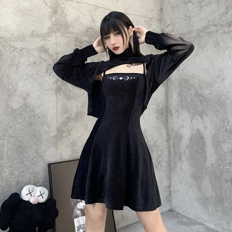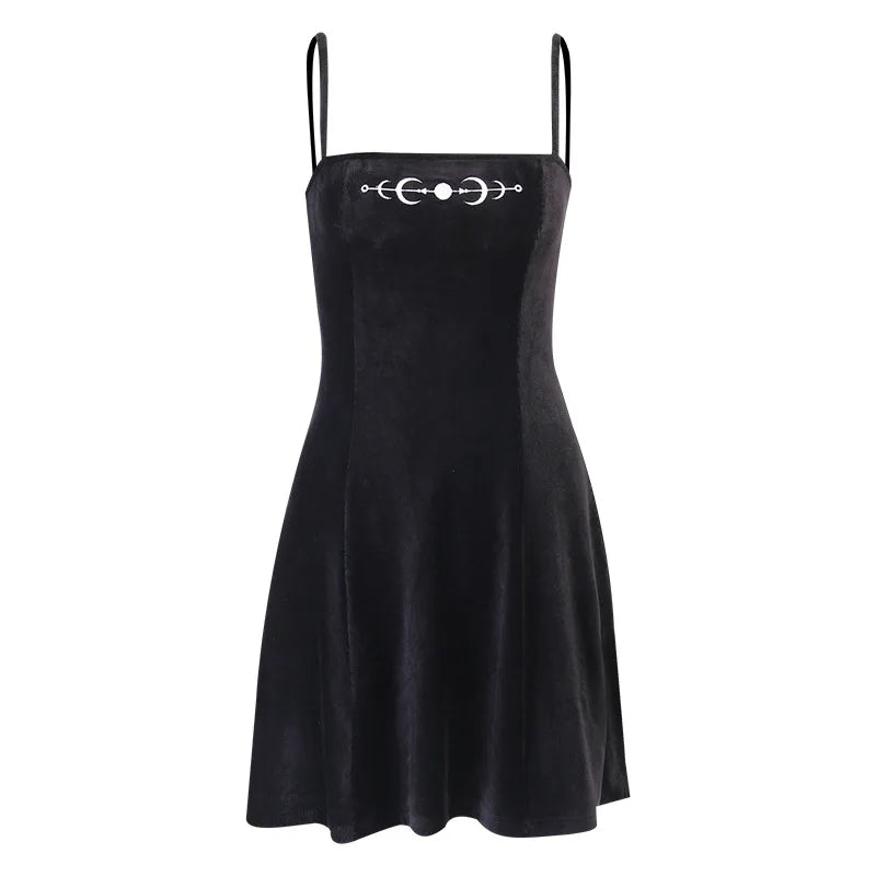 Pour vos soirées d'été entre diablesses ou pour un date avec votre crush, cette robe gothique femme velour est ce qu'il manque à votre dressing ! Son imprimé lunaire et sa coupe fit and flare avec finition velours collent parfaitement à l'esprit gothique. Restez simple et complétez votre tenue avec notre grand choix de bijoux gothique en métal pour femme.