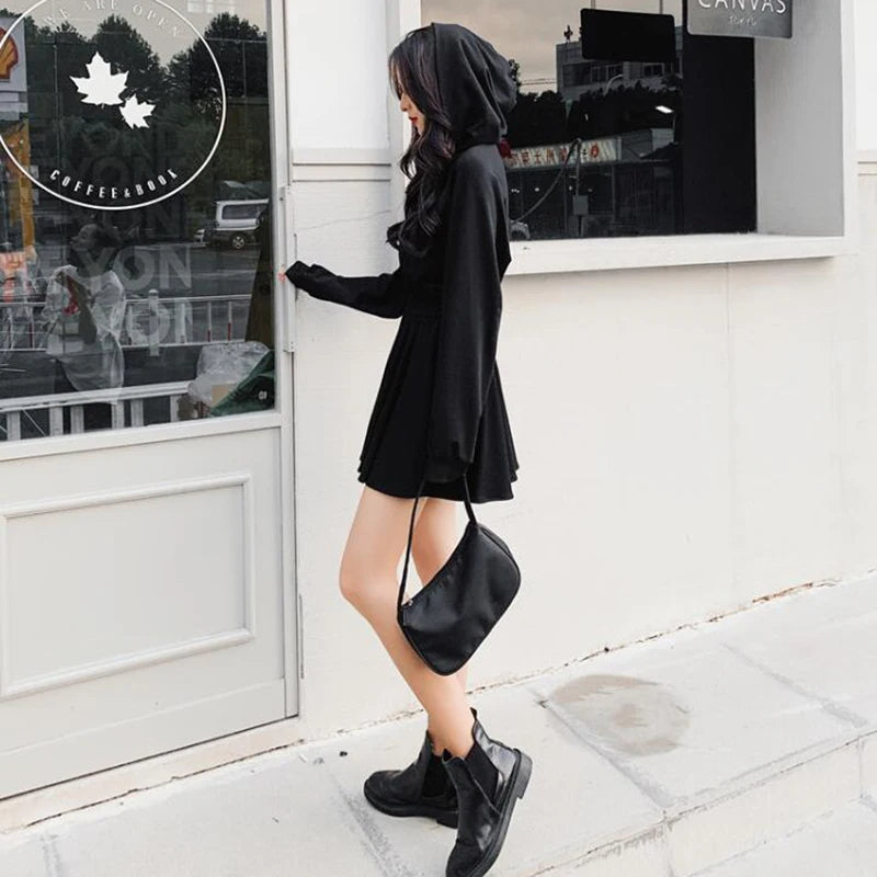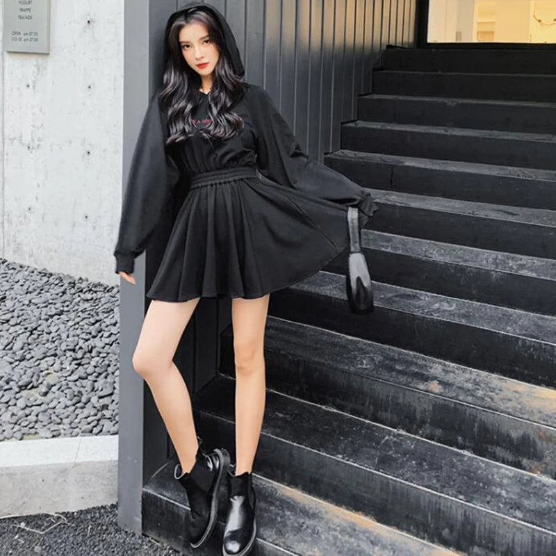 Un look en toute simplicité. Cette jupe gothique courte répond à toutes les attentes d'une jeune gothique : Un style détonnant, confortable et pratique. Sa jupe directement cousu sur le top vous simplifiera la vie, pas besoin de choisir sa tenue pendant des heures le matin. Comme notre mannequin, sublimez ce vêtement avec nos chaussettes hautes