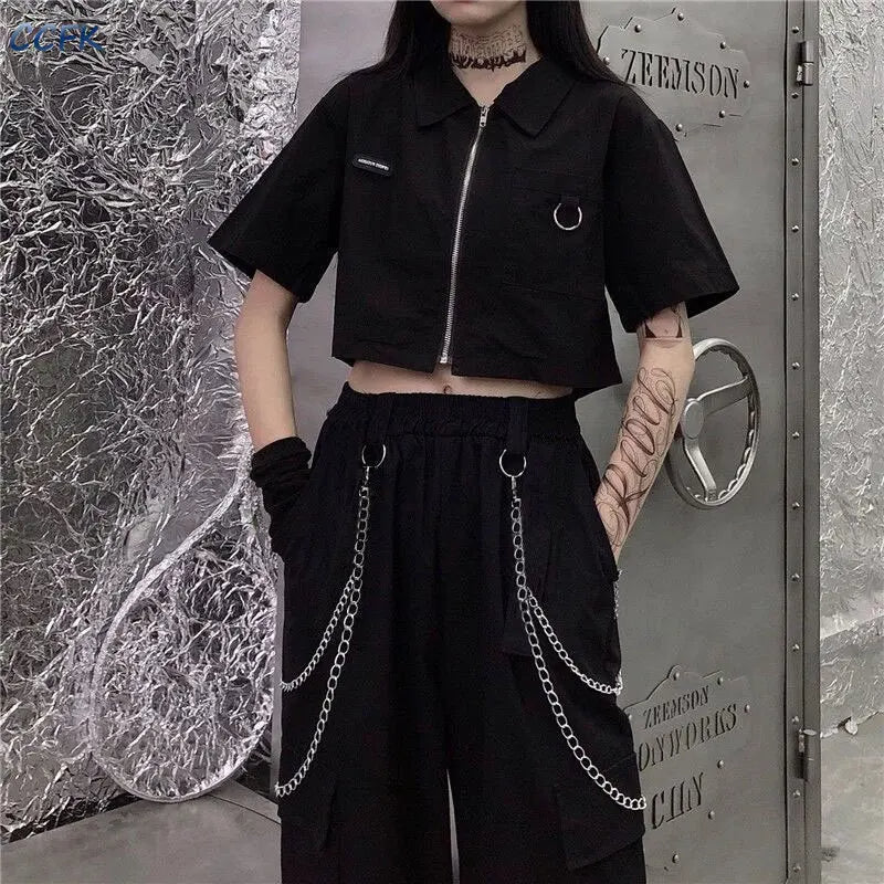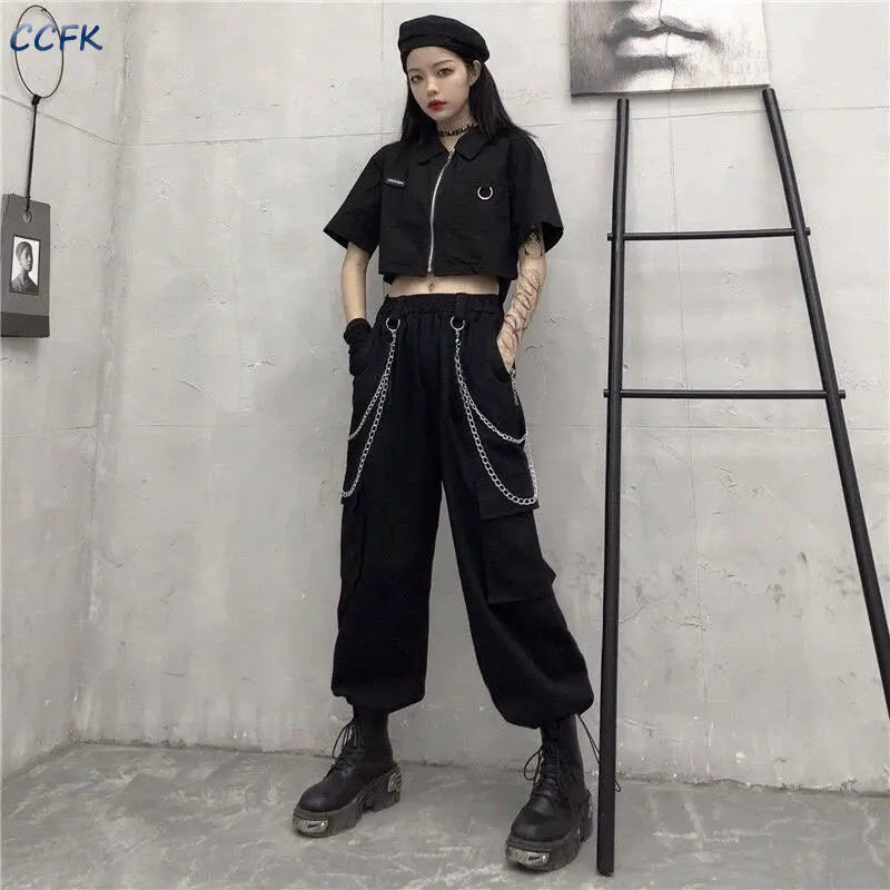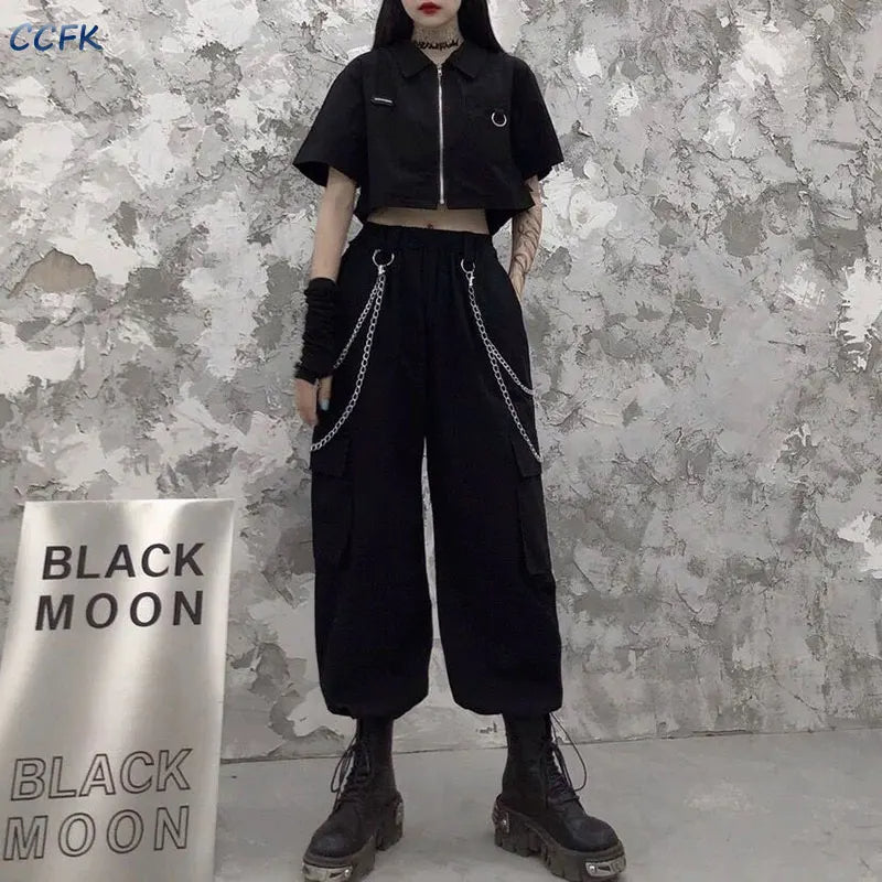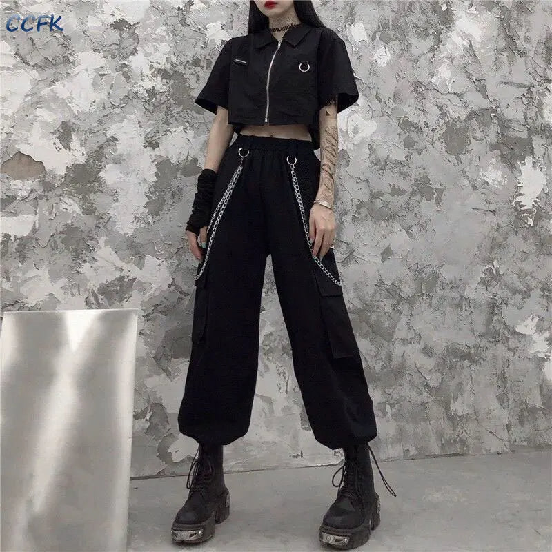 Voulez vous arborer un style urban goth ? Alors ce sweat gothique femme à bretelles saura se rendre indispensable à votre tenue. Quoi de plus goth que des chaines et des bretelles sur un outfit tout noir ! Il se mariera à la perfection avec un de nos pantalon urban goth style cyberpunk.