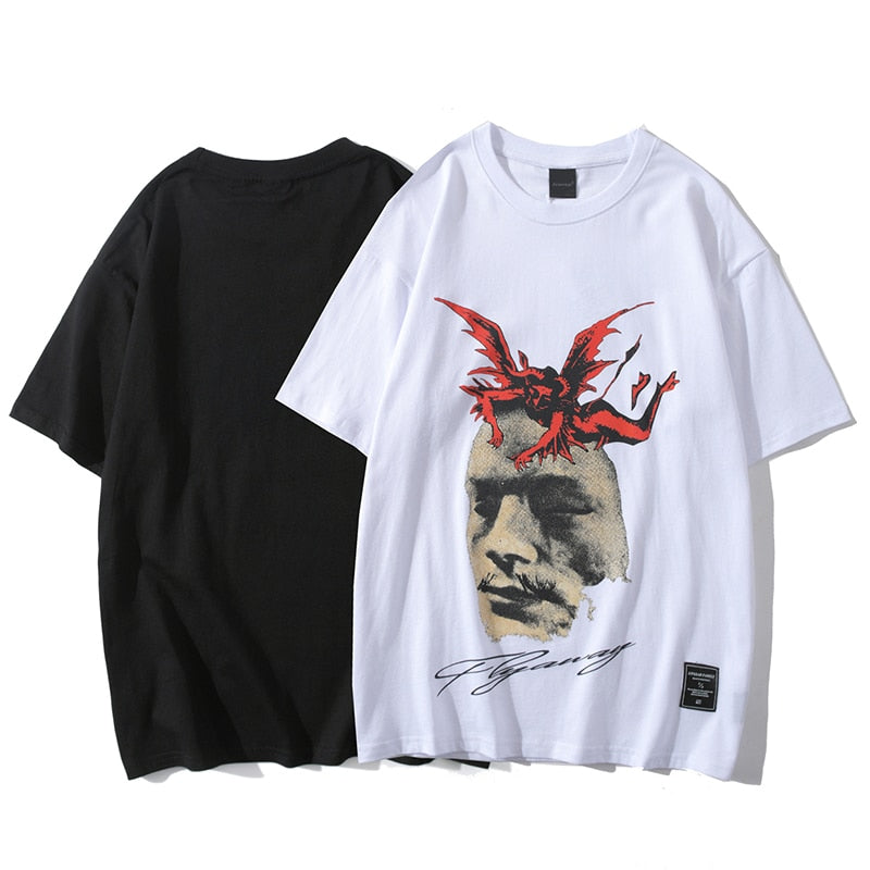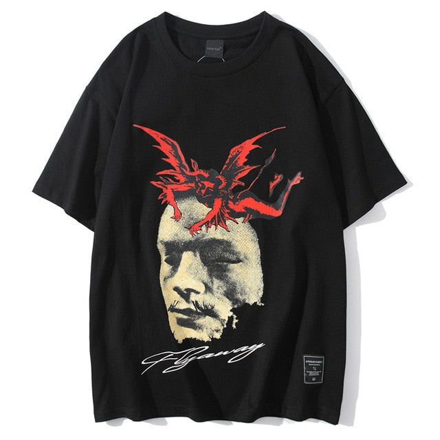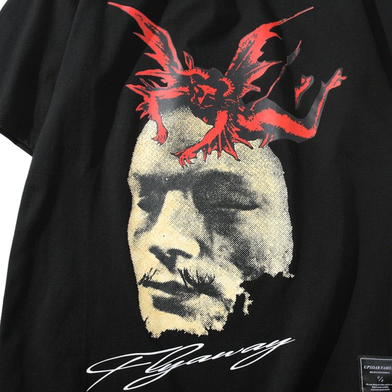Un classique gothique couleur sombre, le malin, et un visage mystérieux. Est-ce qu'il faut réellement chercher à en faire plus pour faire un beau tee shirt gothique ?