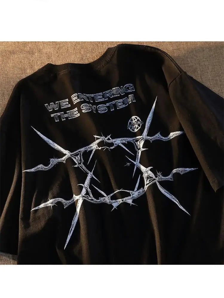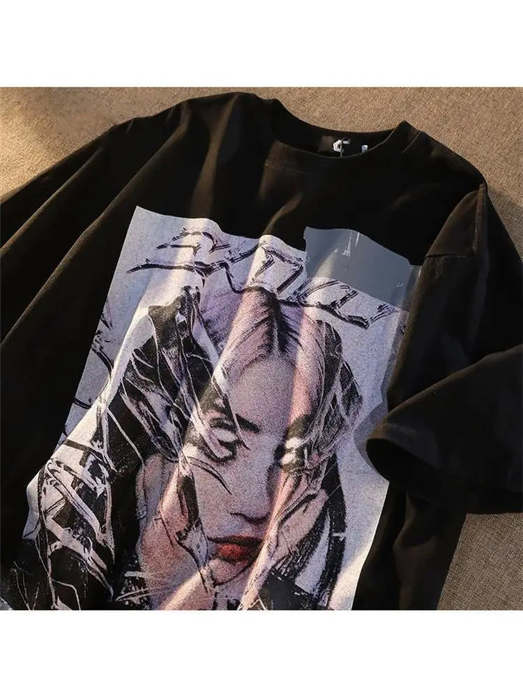 Tee shirt gothique homme au visuel billie eilish original. Coupe uban goth, ce tee shirt se mariera parfaitement dans un look gothique full black avec jean goth noir et botte compensée gothique.
