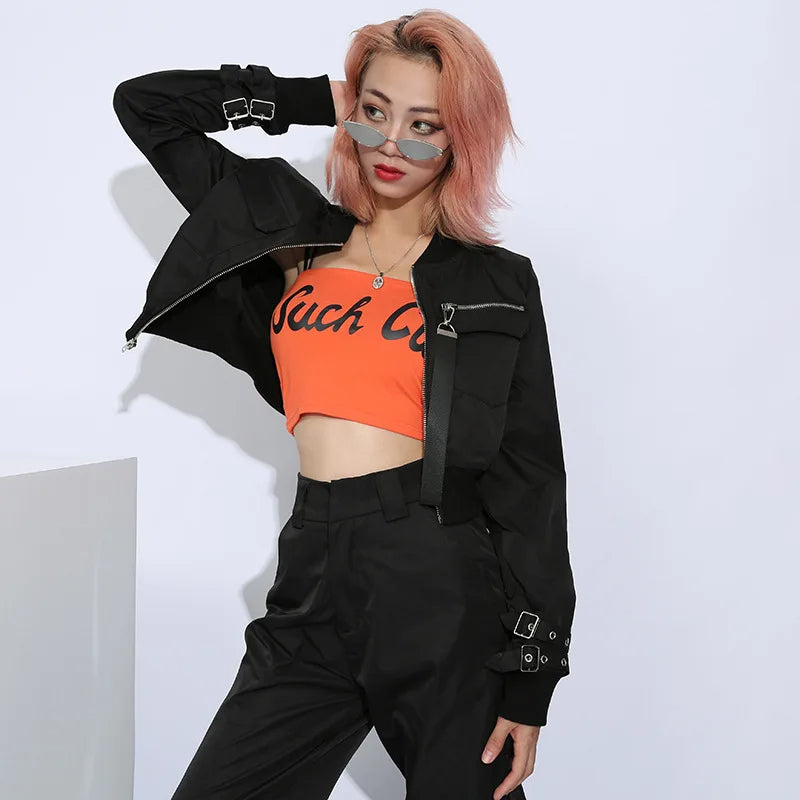 Avec cette veste gothique pour femme, sa coupe courte façon crop top et son style full black, c'est le style urban goth qui est mit en avant. Elle sera parfaite pour nos petites démones dans une tenue du quotidien, pour aller au boulot par exemple. Pour compléter votre look urban en toute sobriété, ajoutez un de nos pantalons gothique à votre panier.