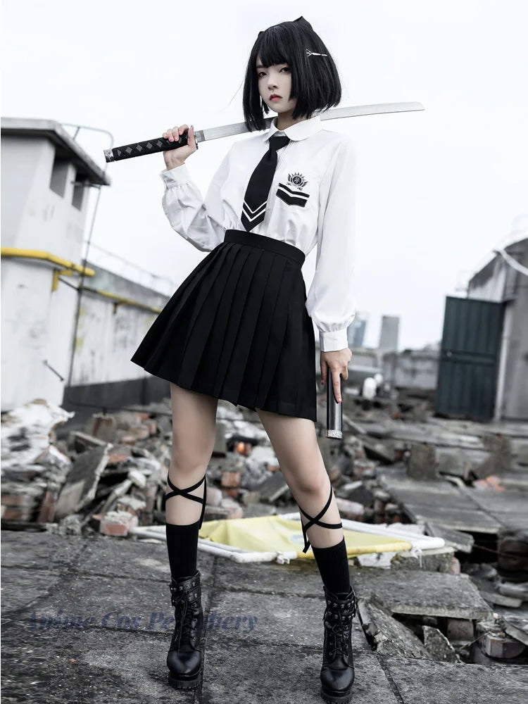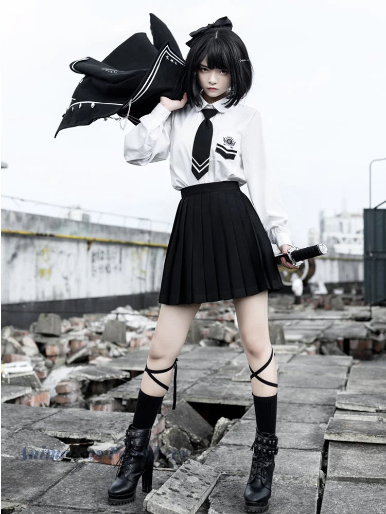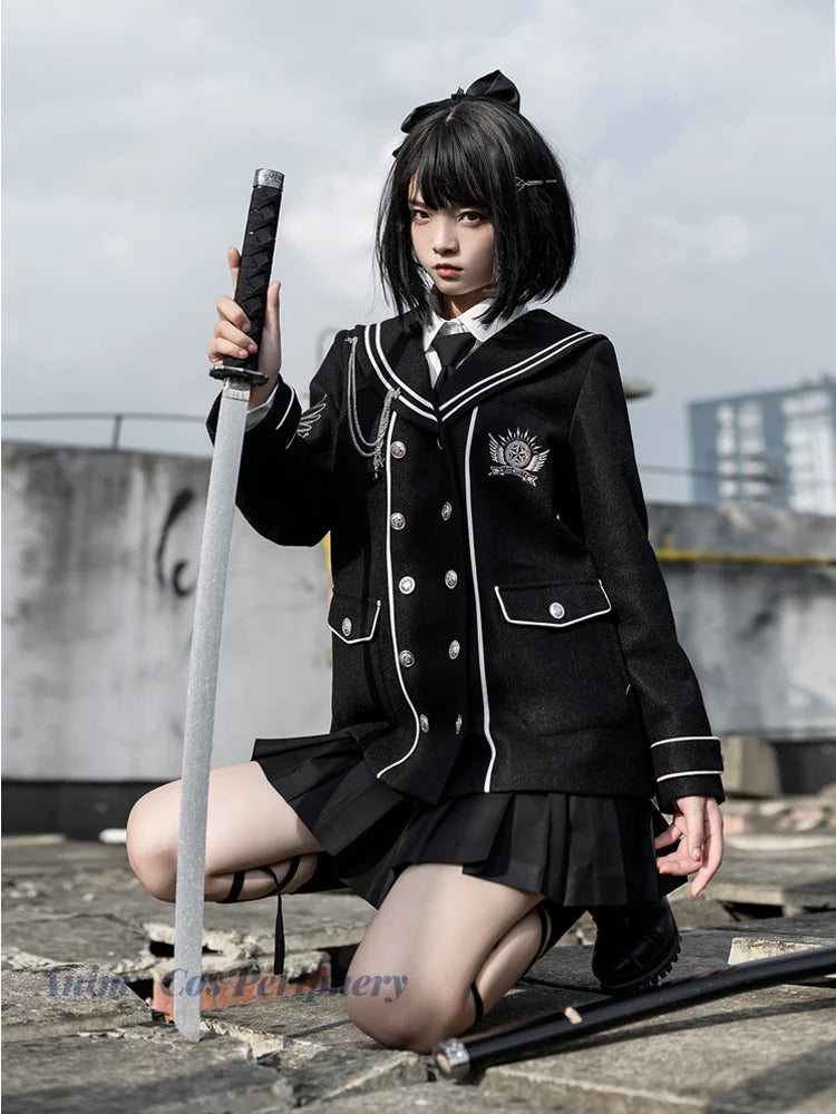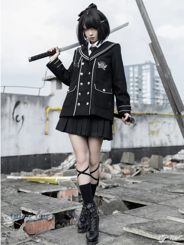 Kawaii desu ne ! Cette veste gothique style uniforme d'écolière au style 100% japonisant est entre modernité et traditions. Nous retrouvons notre chère Sakura en cosplay de samouraï comme dans un manga. Ressemblez à une héroïne de votre animé favori en l'associant avec une jupe gothique style écolière. Désolé, les katanas ne sont pas en stock, pour l’instant ;)